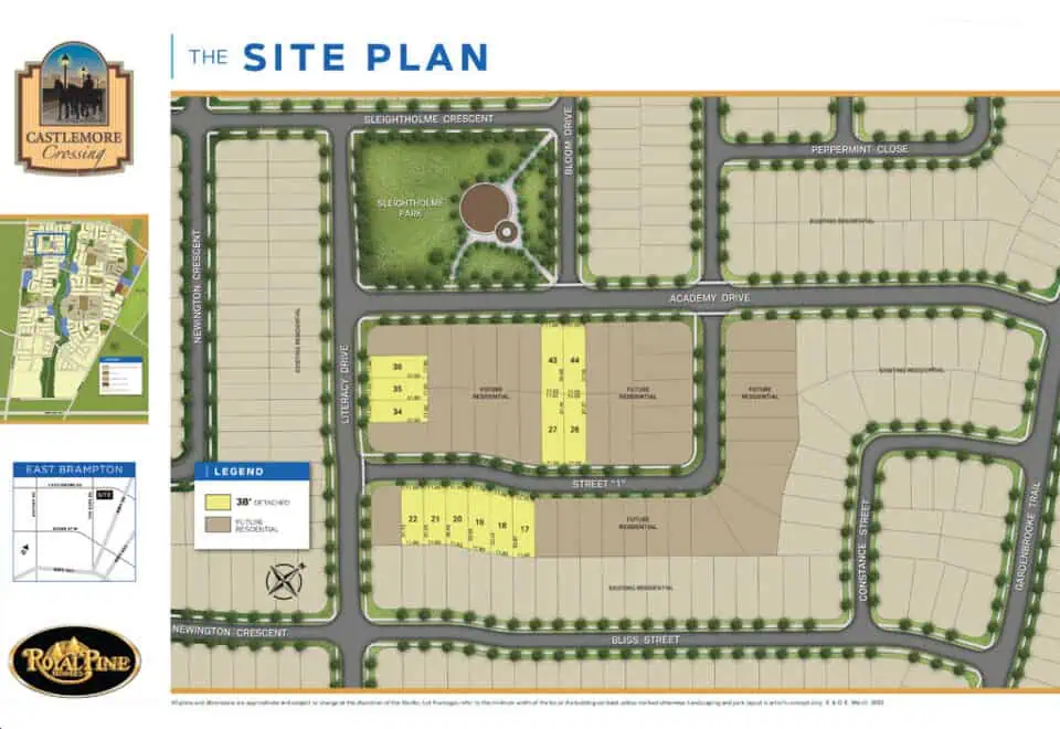 Castlemore Crossing is an exclusive enclave of luxury detached homes by Royal Pine Homes, situated in Brampton’s prestigious east end. This master-planned community offers 38′, 40′, and 45′ detached homes, blending timeless architecture with premium finishes. Nestled within an established neighbourhood, residents will enjoy proximity to parks, top-rated schools, and a variety of amenities, all while benefiting from seamless connectivity to major highways and transit options.