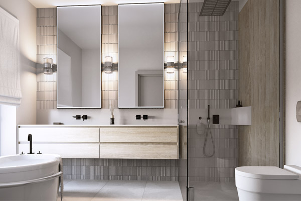 3. Principal ensuite with freestanding tub, double sink vanity, frameless glass shower